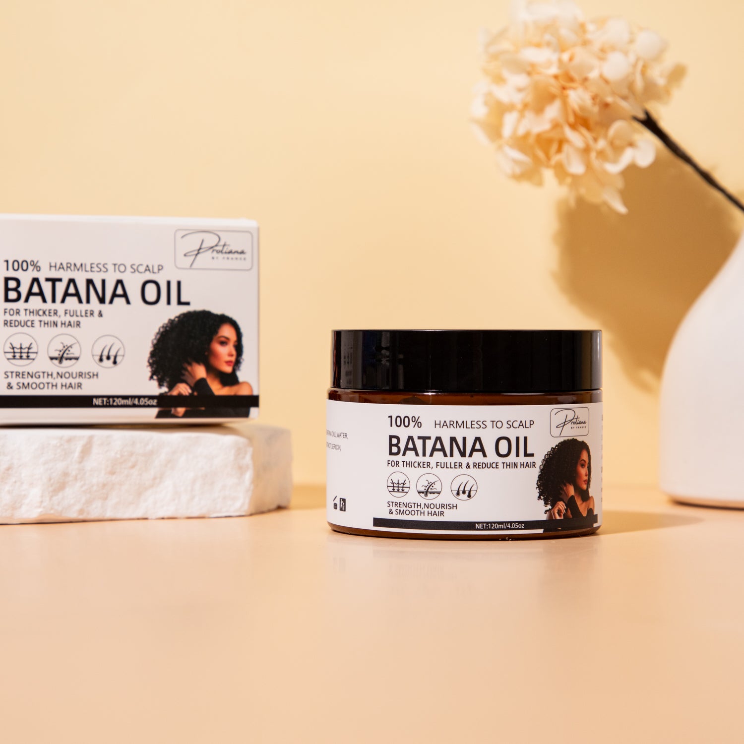 L’huile de Batana est réputée pour ses propriétés réparatrices et hydratantes. Elle aide à renforcer les cheveux, à réduire les fourches, à stimuler la pousse et à améliorer la texture générale de la chevelure, la rendant plus douce et plus brillante.